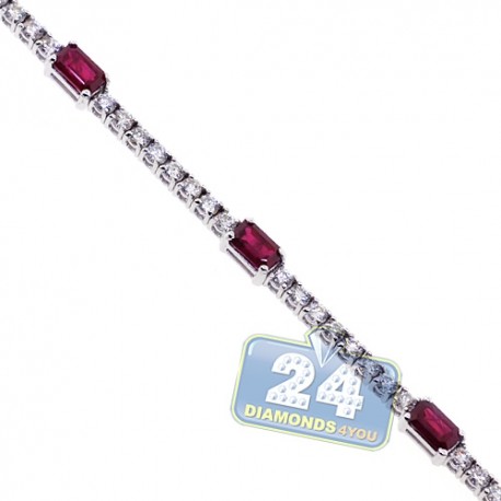 18K White Gold 2.41 ct Ruby Diamond Womens Tennis Bracelet
