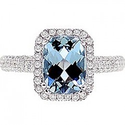 18K White Gold 2.52 ct Aquamarine Diamond Womens Ring