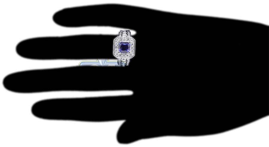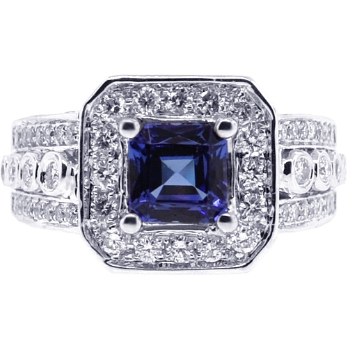 Our incredibly enchanting women's gemstone ring marries rich color and sparkle! Masterly created from lustrous 18k white gold, it features diffused blue square-shaped genuine sapphire (1.10 ct) in the center, and icy white round brilliant-cut diamonds (1.46 ct) around. Get a timeless look with this sapphire ring!