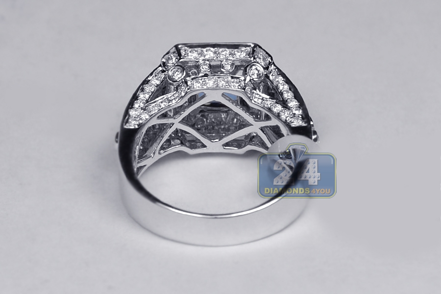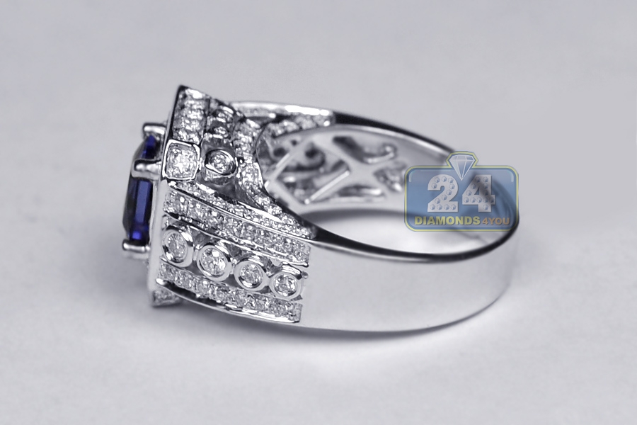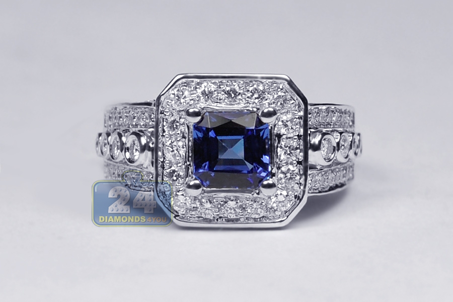 18K White Gold 2.56 ct Princess Sapphire Diamond Womens Ring