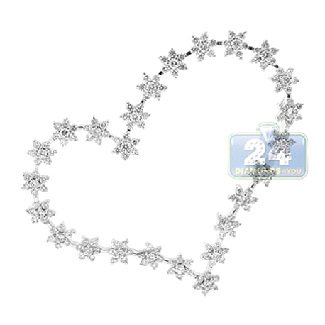 18K White Gold 2.66 ct Diamond Station Open Heart Pendant
