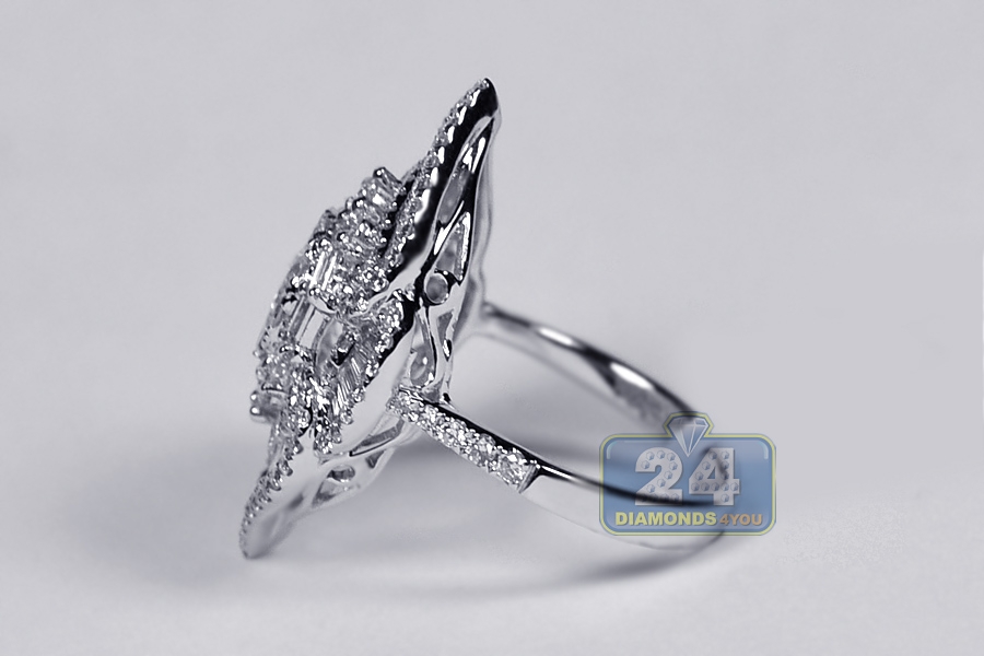 18K White Gold 2.72 ct Baguette Diamond Cluster Womens Ring