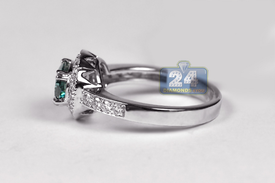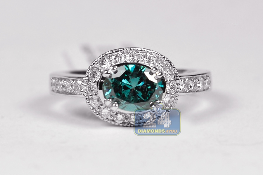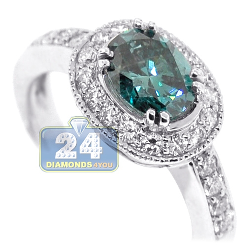 18K White Gold 2.88 ct Oval Blue Diamond Womens Engagement Ring