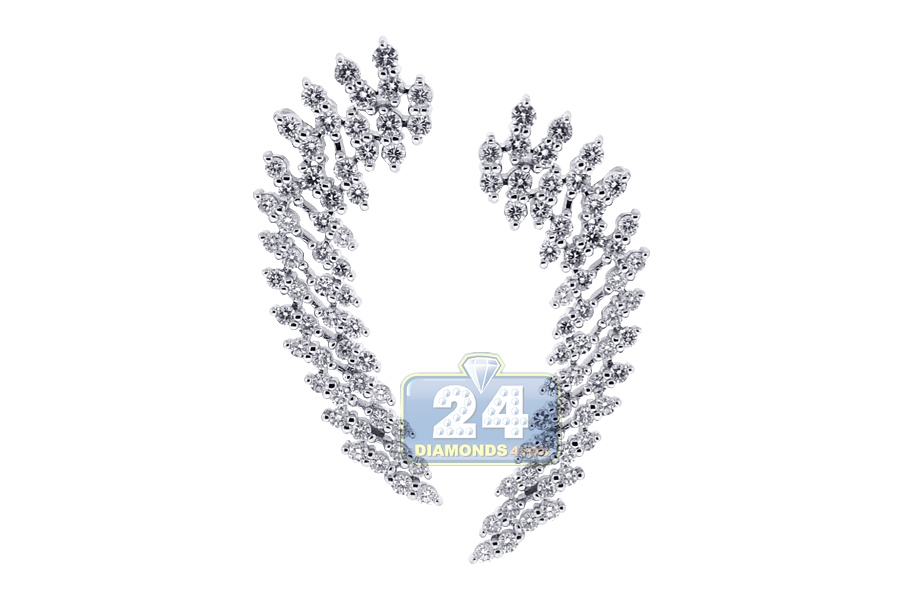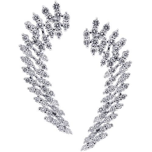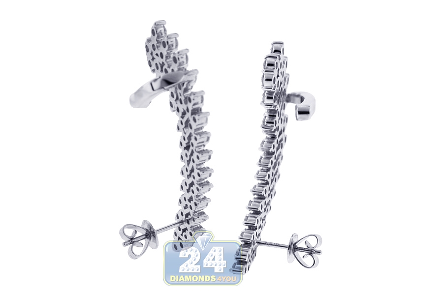 18K White Gold 2.92 ct Diamond Cluster Womens Ear Crawlers