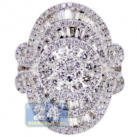 18K White Gold 2.99 ct Diamond Womens Cocktail Ring