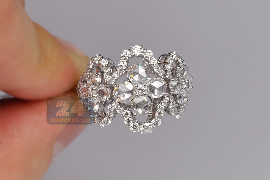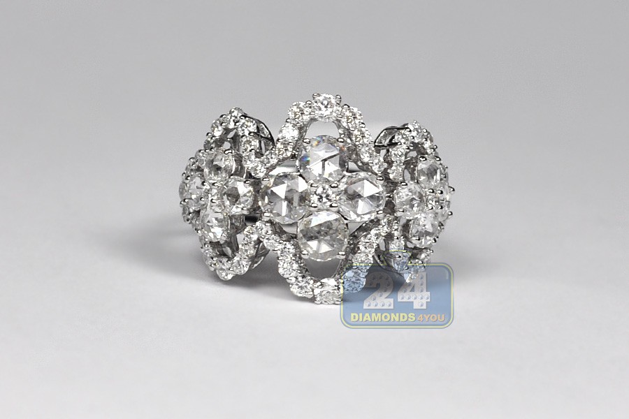 18K White Gold 2.11 ct Rose Cut Diamond Womens Vintage Ring