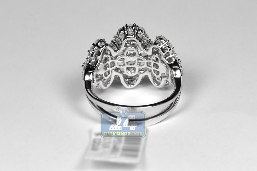 Sensationally dramatic, yet classic and romantic at the same time, this antique looking diamond beauty radiates a fiery brilliance! The ring is masterly crafted in lustrous 18k white gold with perfectly polished finish, and skillfully handset with 2.11 carat of genuine white round and rose cut diamonds. This diamond ring is filled with timeless majesty and impressive appearance!
