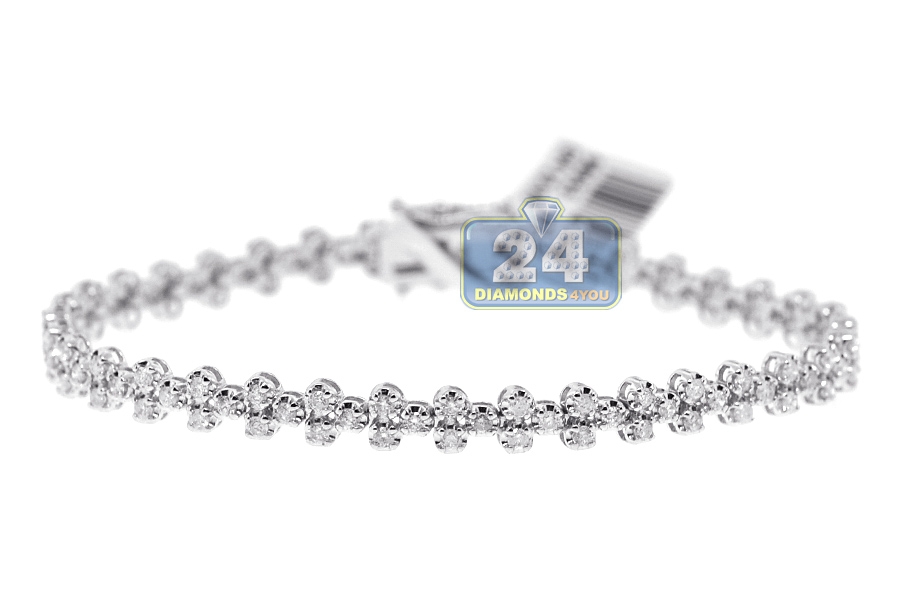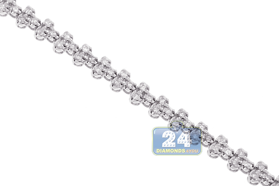18K White Gold 2.27 ct Diamond Womens Cross Tennis Bracelet