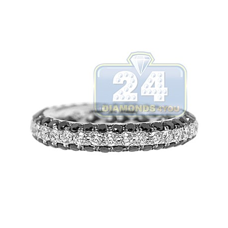18K White Gold 2.37 ct All Way Black Diamond Womens Band Ring