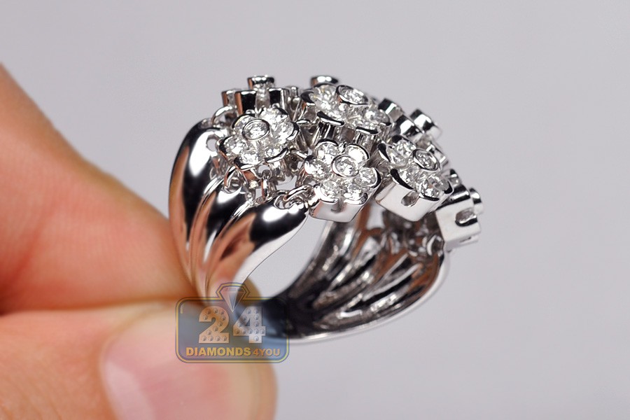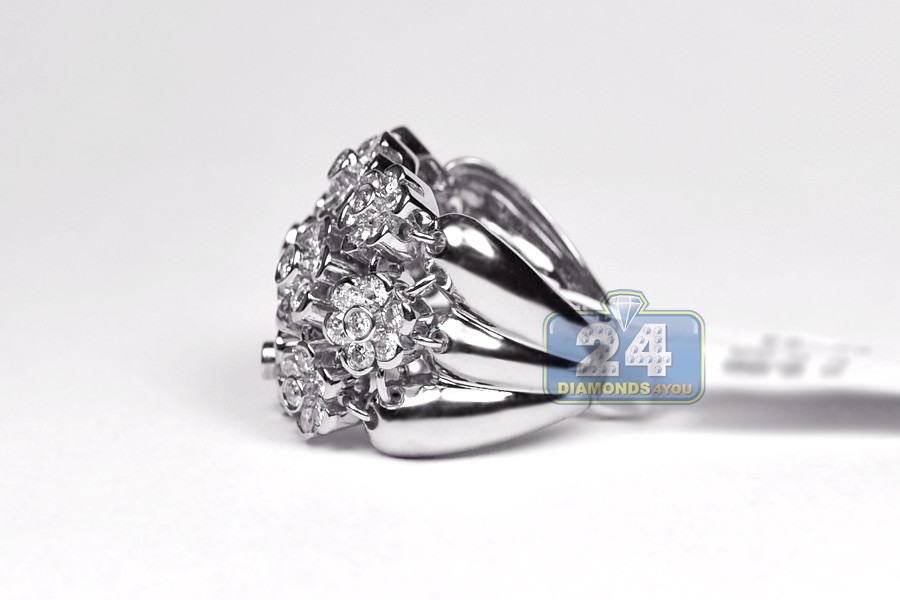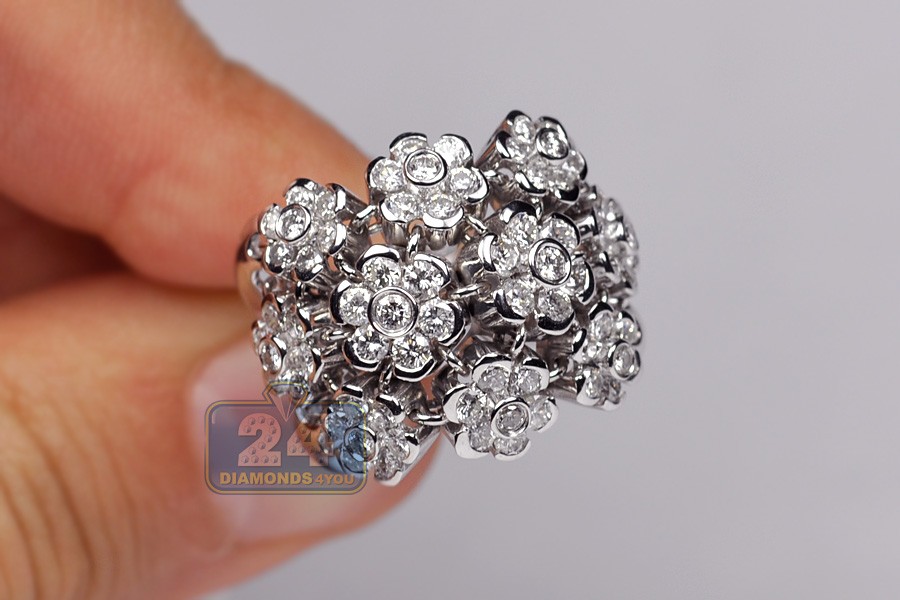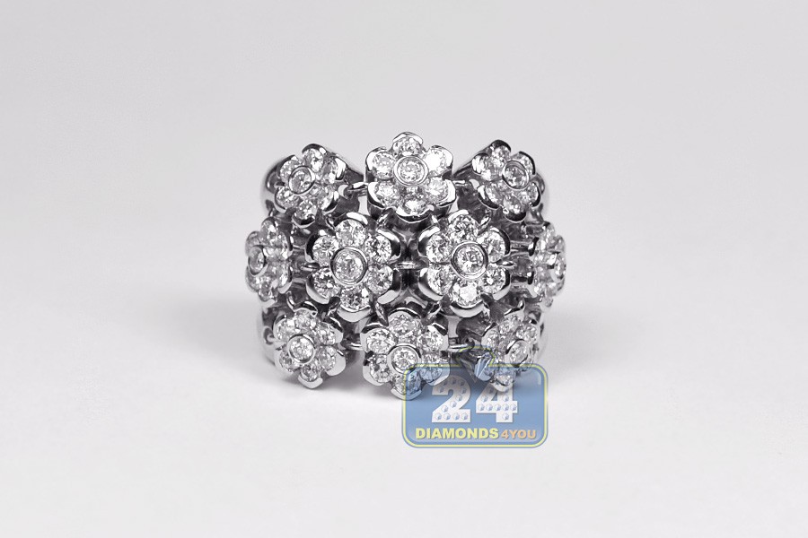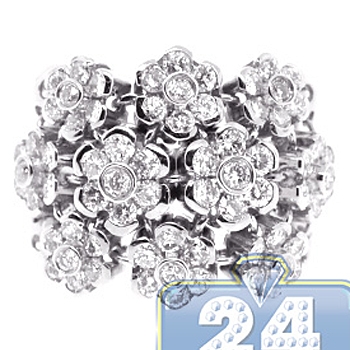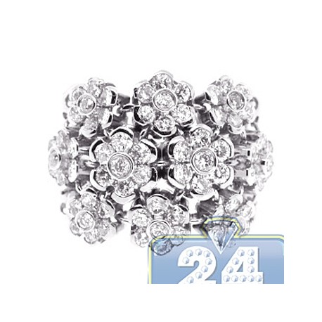 18K White Gold 2.40 ct Diamond Cluster Womens Flower Ring