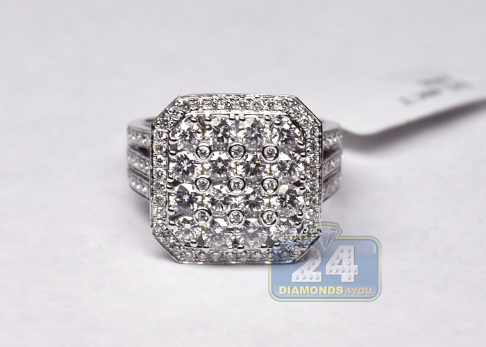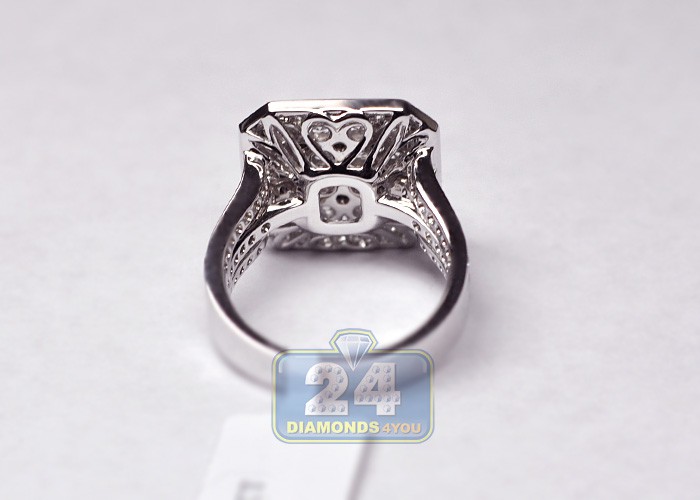 18K White Gold 2.48 ct Diamond Vintage Square Womens Ring