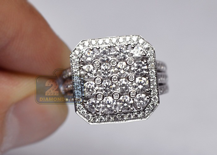 Add a luxurious vintage vibe to your look with our square shaped signet! The ring is professionally designed in lustrous 18k white gold with shiny polished finish, and masterly encrusted with genuine white round cut diamonds of various sized totaling 2.48 carat. Impressive eye clean and sparkling brilliants feature VS2-SI1 clarity and G-H color. Absolutely breathtaking shine of this gorgeous jewel will catch a lot of attention!