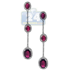 18K White Gold 2.65 ct Ruby Diamond Womens Halo Drop Earrings