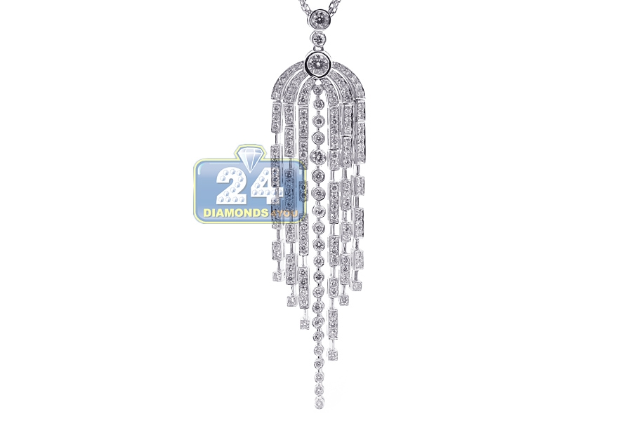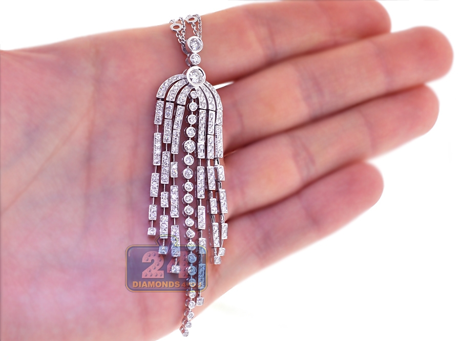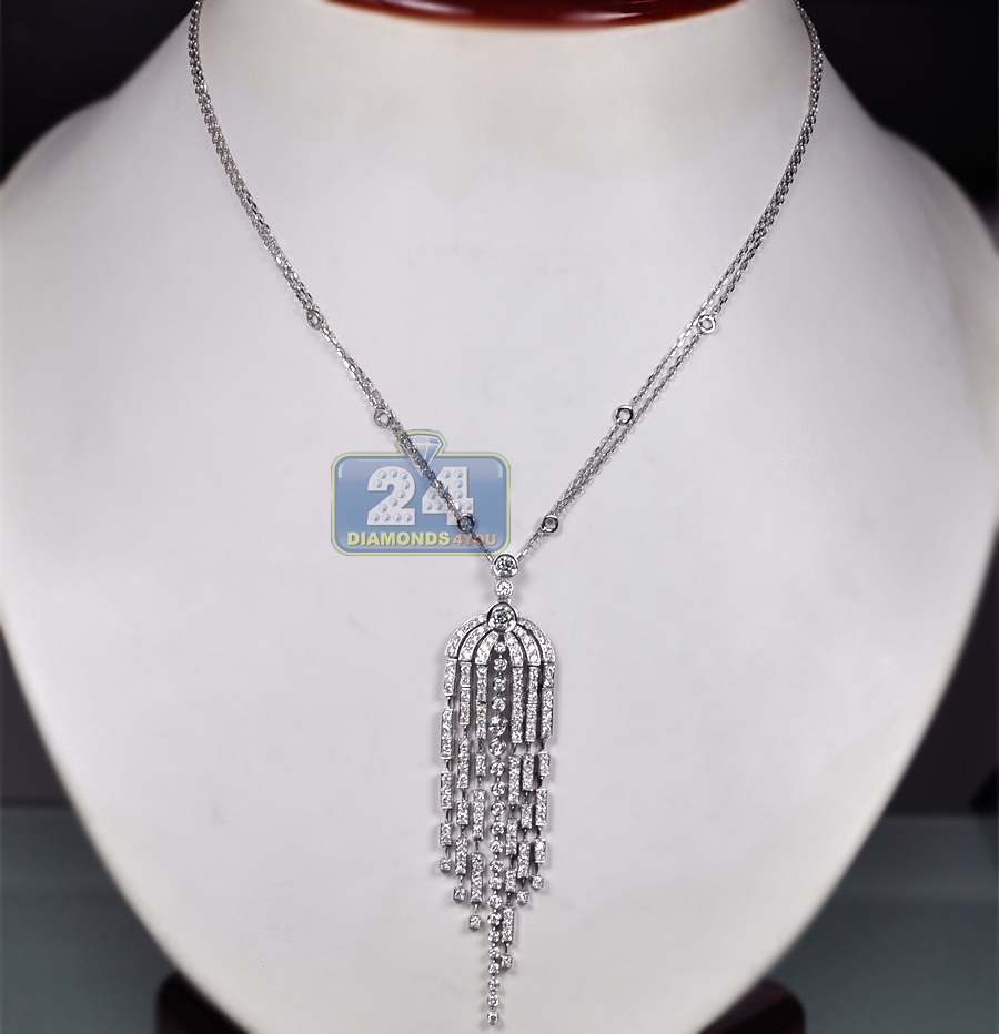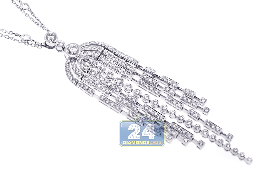 18K White Gold 3.07 ct Diamond Womens Tassel Pendant Necklace