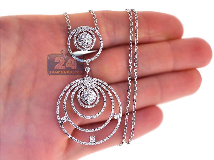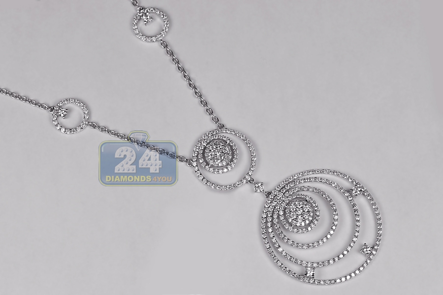 18K White Gold 3.10 ct Diamond Layered Circle Pendant Necklace