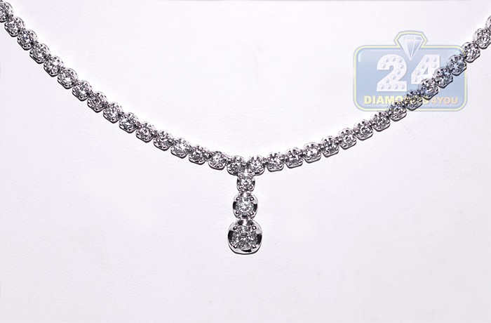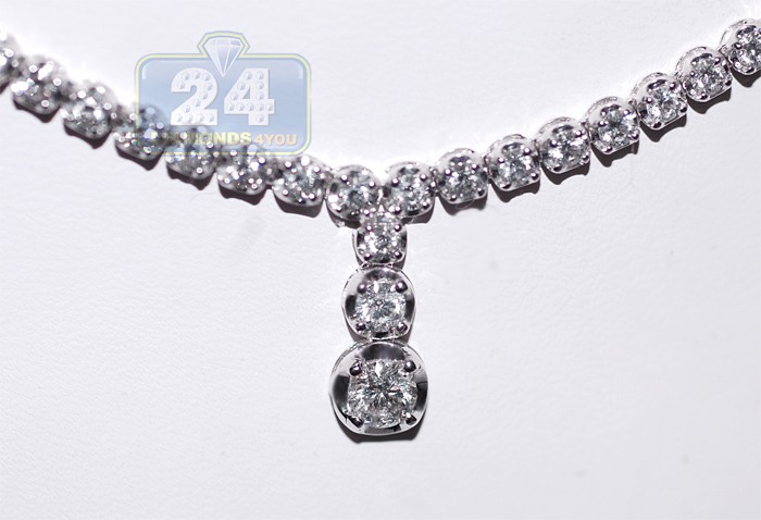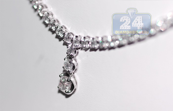18K White Gold 3.14 ct Diamond Drop Y Shape Tennis Necklace