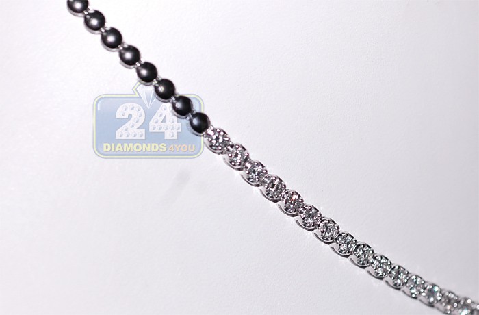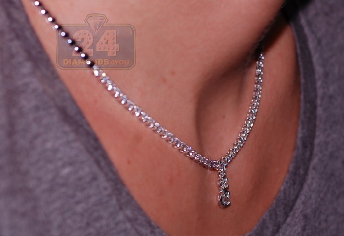 Here's a statement-making diamond Y shape necklace that will last you a lifetime! It's skillfully handmade of solid 18 karat white gold with rhodium covered high-polished finish. The halo links are set with lustrous white round brilliant-cut genuine diamonds, all weighting 3.14 carats (SI1-SI2 clarity, G-H color). This women's diamond necklace measures 16 inches around the neck, 3/4 inch of dangling part and 4 mm in width of the links. Choose the diamond tennis necklace for your next fancy event!