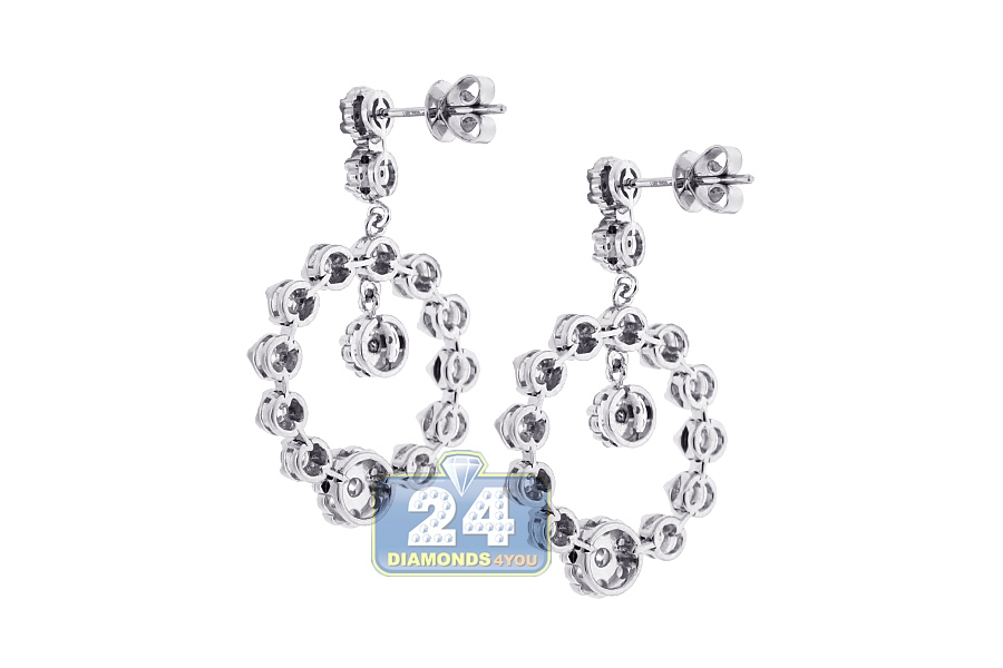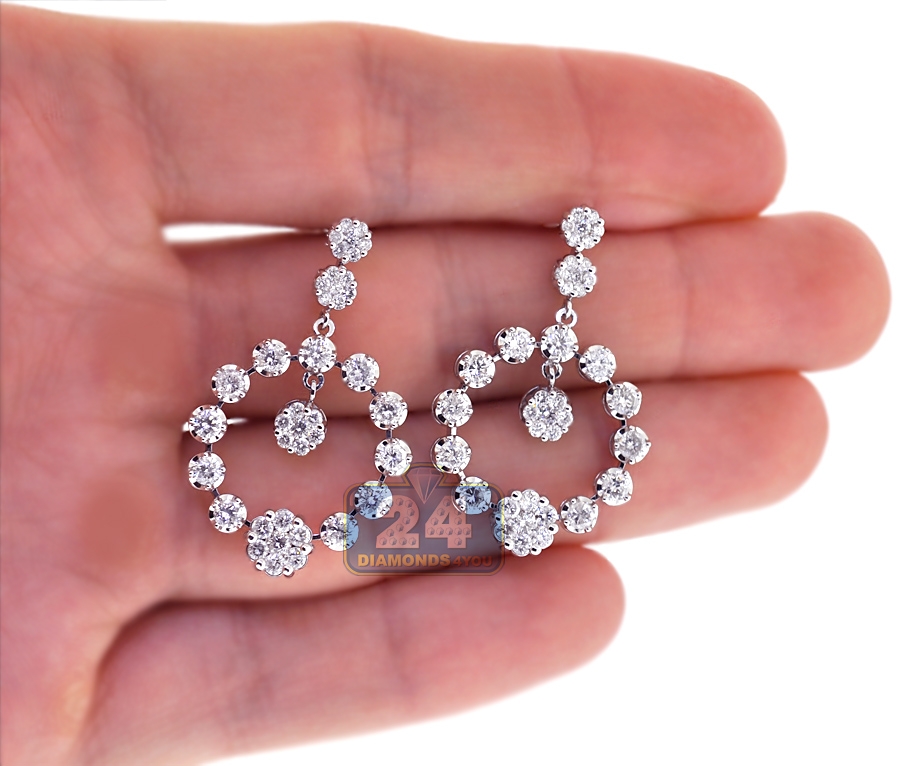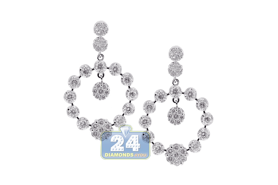 18K White Gold 3.18 ct Diamond Cluster Open Dangle Earrings