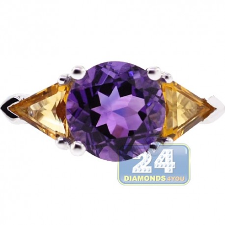 18K White Gold 3.35 ct Amethyst Citrine Womens 3 Stone Ring
