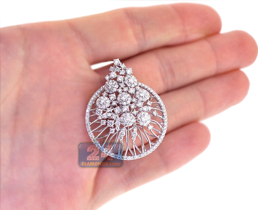 18K White Gold 3.53 ct Diamond Womens Openwork Pendant