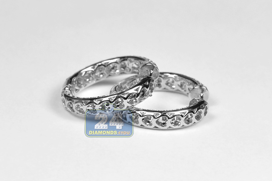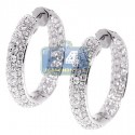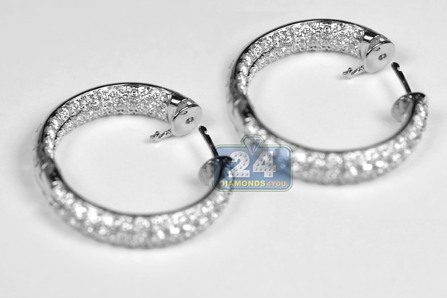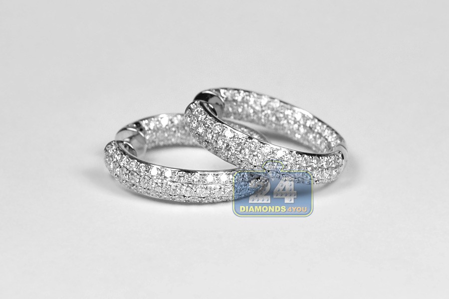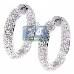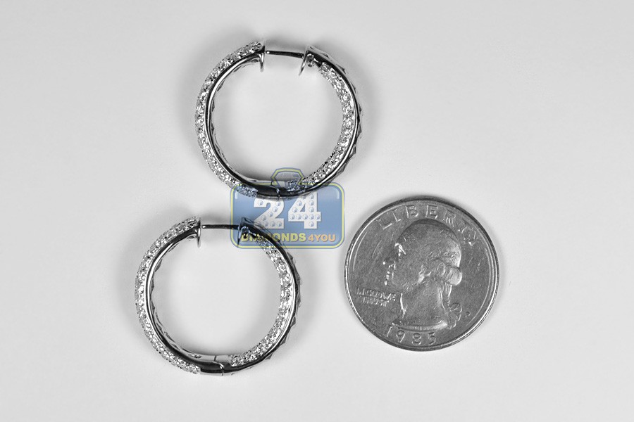 18K White Gold 3.53 ct Diamond Womens Round Hoop Earrings 1 Inch