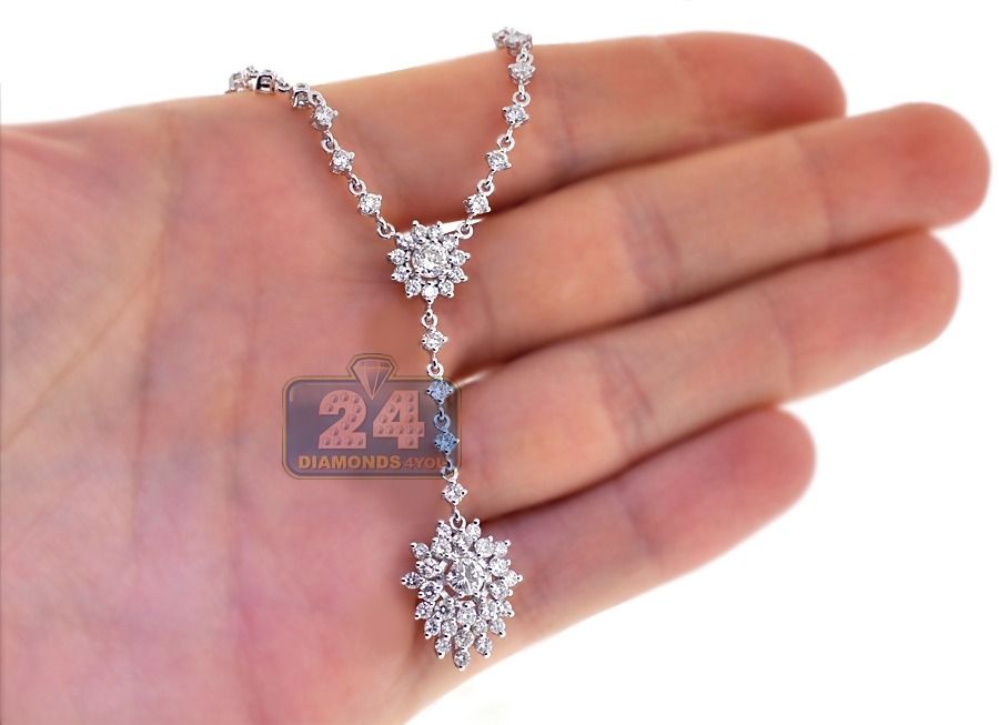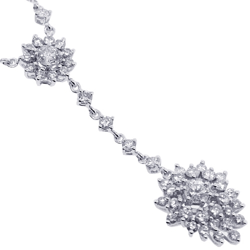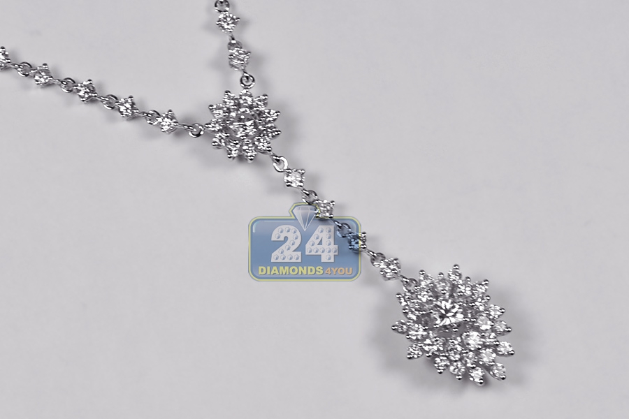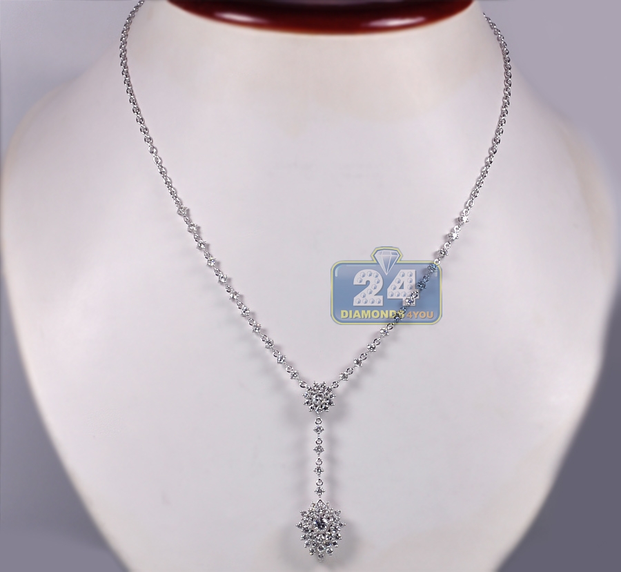 18K White Gold 3.61 ct Diamond Cluster Womens Y Shape Necklace