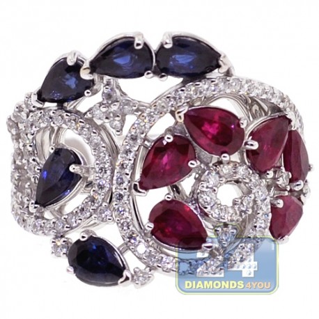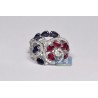 18K White Gold 3.64 ct Diamond Sapphire Ruby Womens Ring