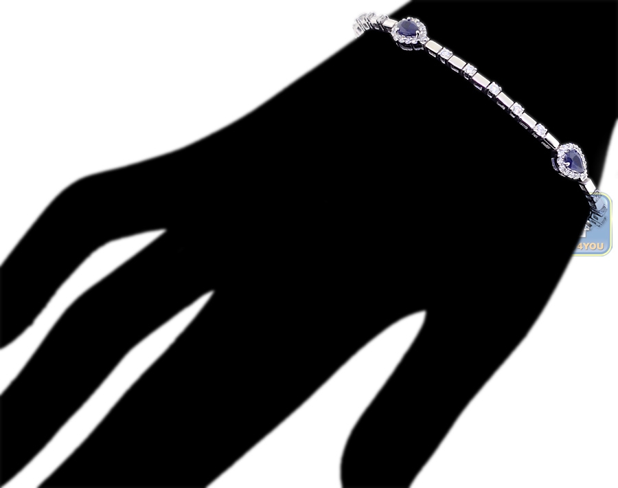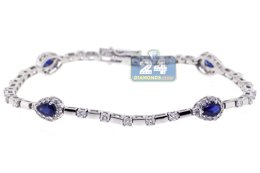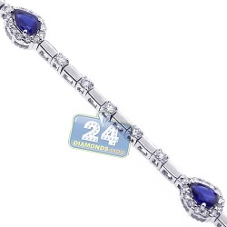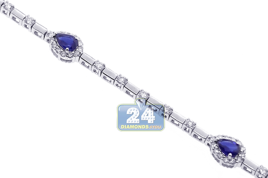 18K White Gold 3.81 ct Pear Sapphire Diamond Womens Bracelet