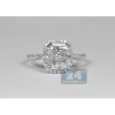 Simply outstanding and lovely! This gorgeous engagement ring is skillfully designed in lustrous 18k white gold, finished with high polish, and accented with white radiant cut diamond of 3.29 carats in the center and 0.39 carat of genuine diamonds on the sides. This brilliant engagement ring is a real timeless beauty!