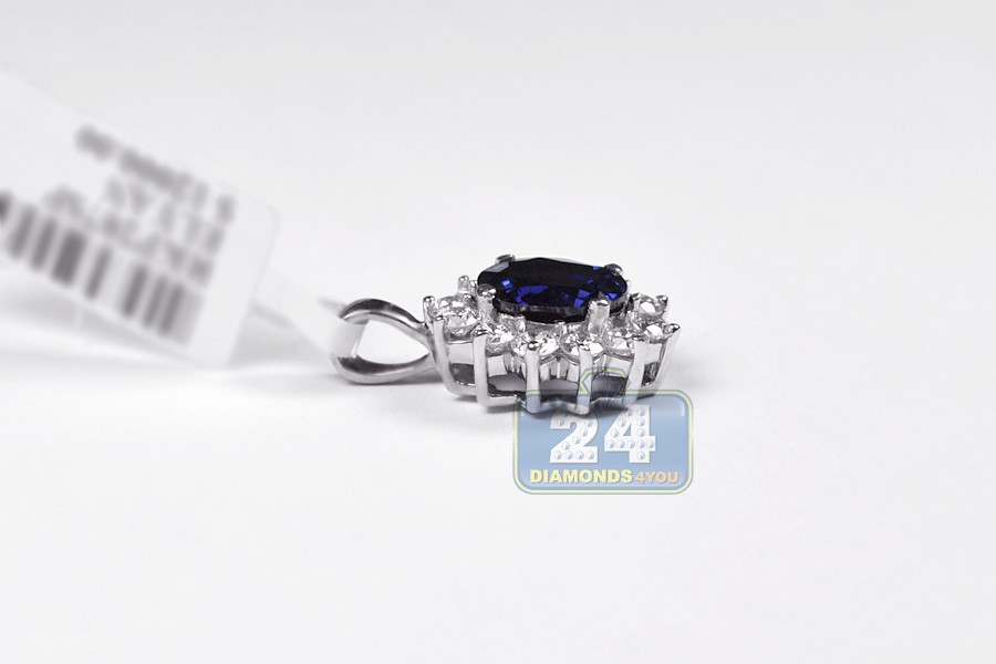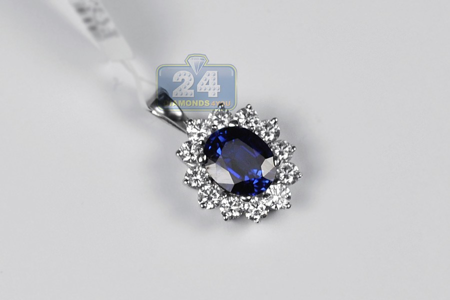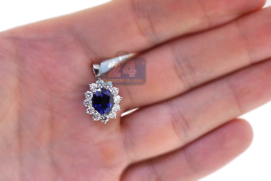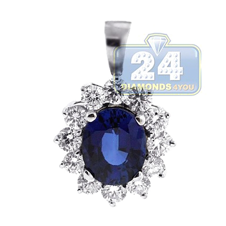 18K White Gold 3.78 ct Diamond Blue Sapphire Womens Pendant