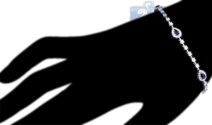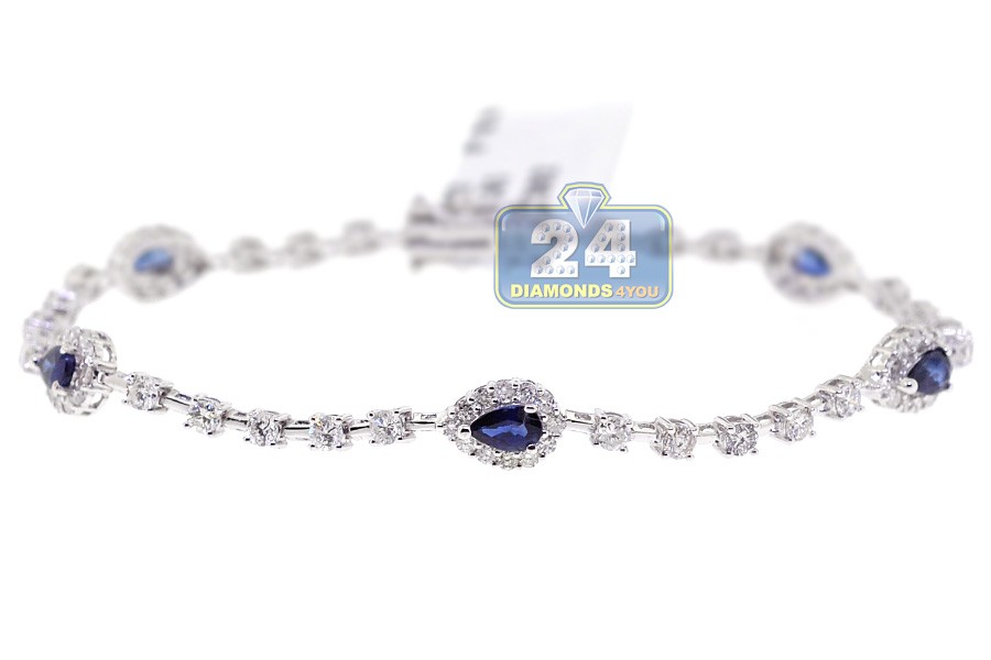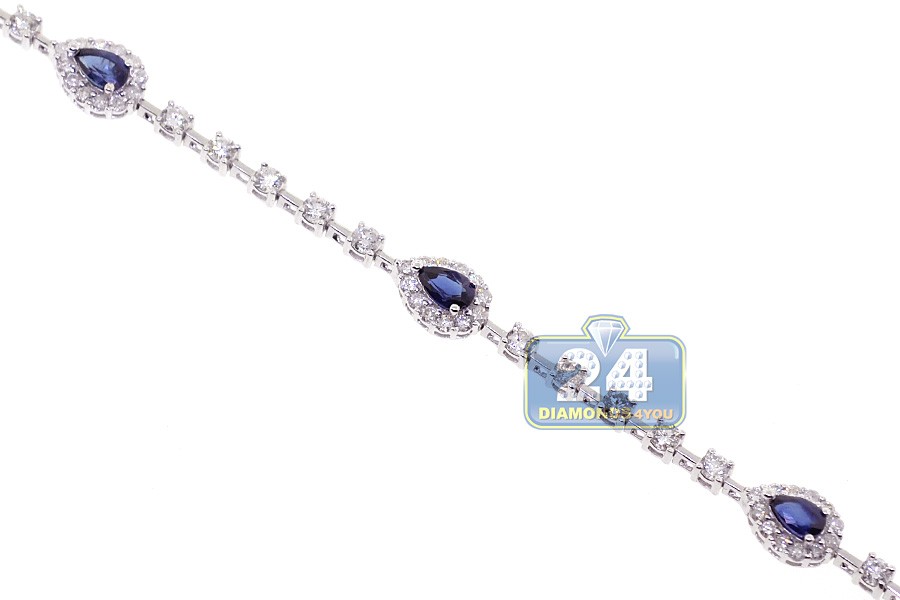 Show your unique taste while adding zest to any outfit with this gorgeous gemstone tennis bracelet! It's artfully crafted in luxurious 18 karat white gold with polished rhodium finish. Our women's tennis bracelet features icy white round-cut diamonds (2.41 carats) and natural blue pear-cut sapphires (1.42 carat). It also has length of 7.25 inches and width of 6 mm. This gemstone wrist bracelet will be a perfect addition to your jewelry collection!