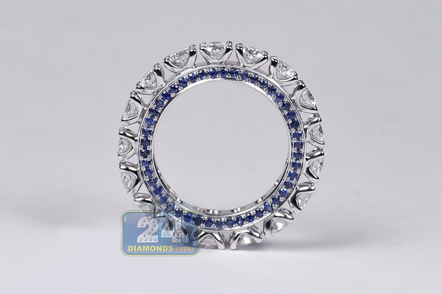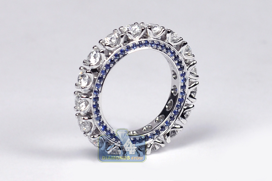 18K White Gold 4.02 ct Diamond Sapphire Eternity Band Ring