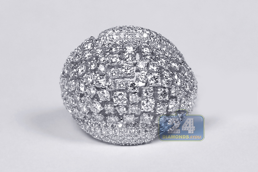 Show off your impeccable taste wearing our lady's unique diamond dome ring! Expertly handmade of cool 18k white gold, it is studded with icy white round brilliant-cut genuine diamonds totaling 4.03 carats. This diamond ring is sure to turn heads!