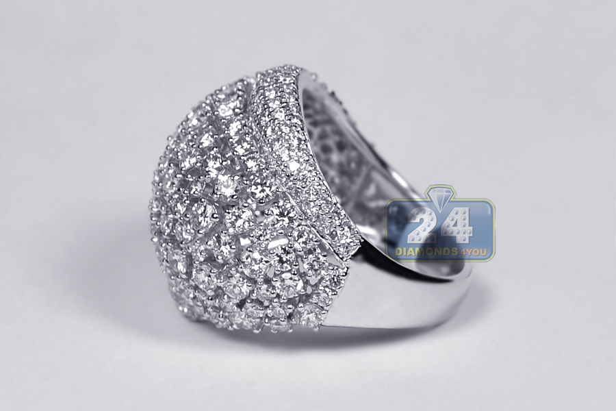 18K White Gold 4.03 ct Diamond Womens Dome Ring