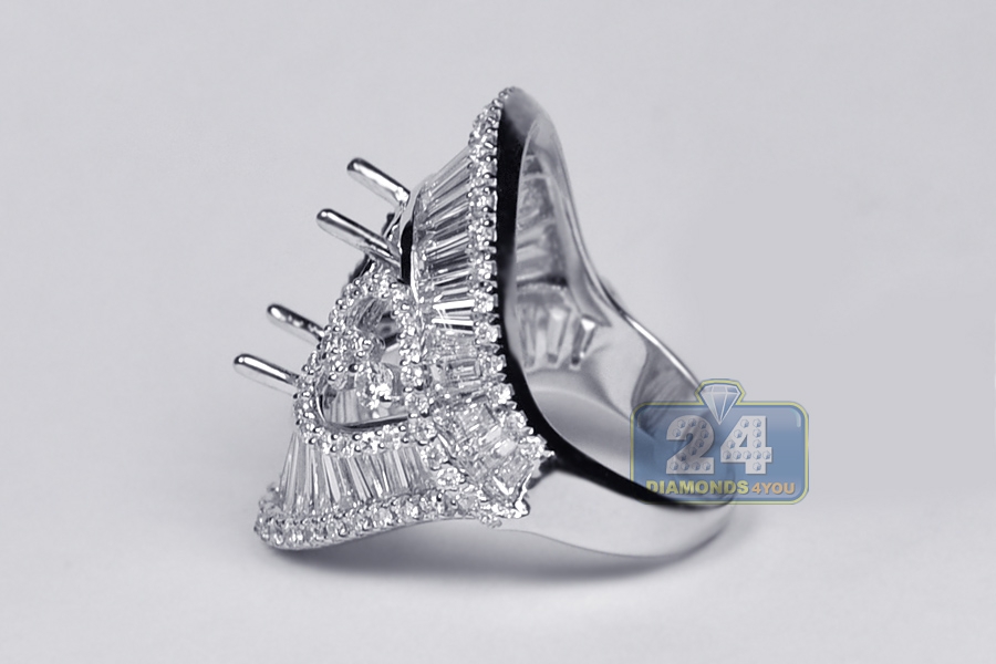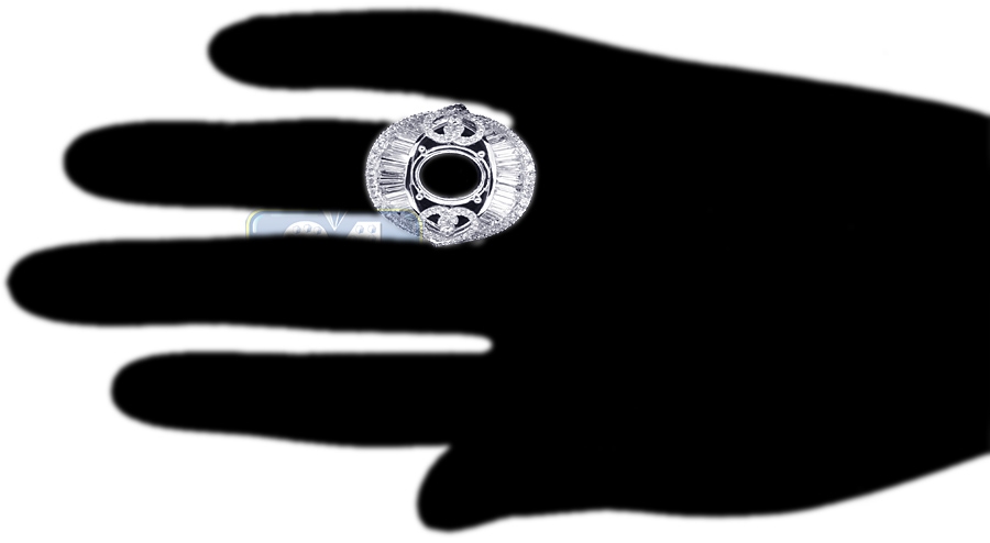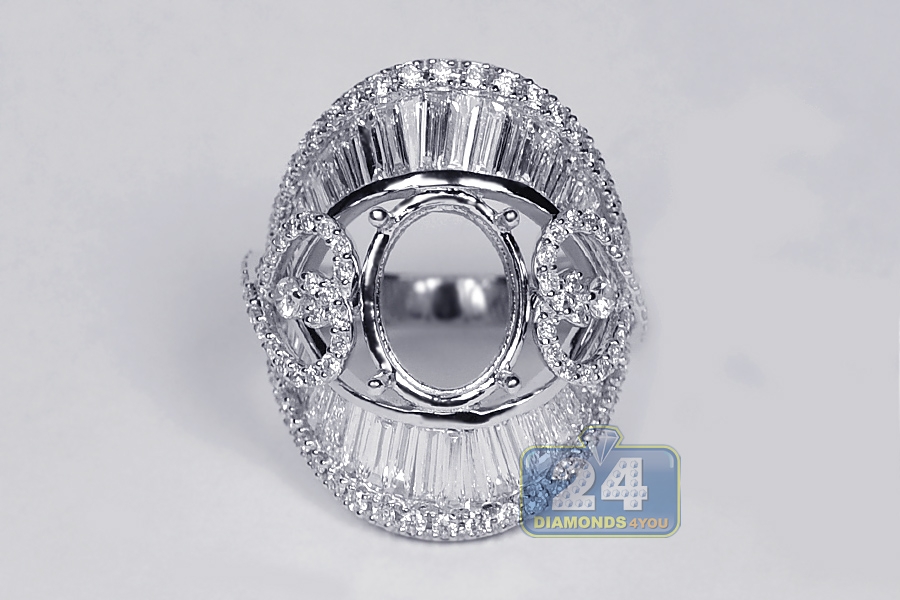 18K White Gold 4.15 ct Diamond Oval Semi Mount Setting Ring