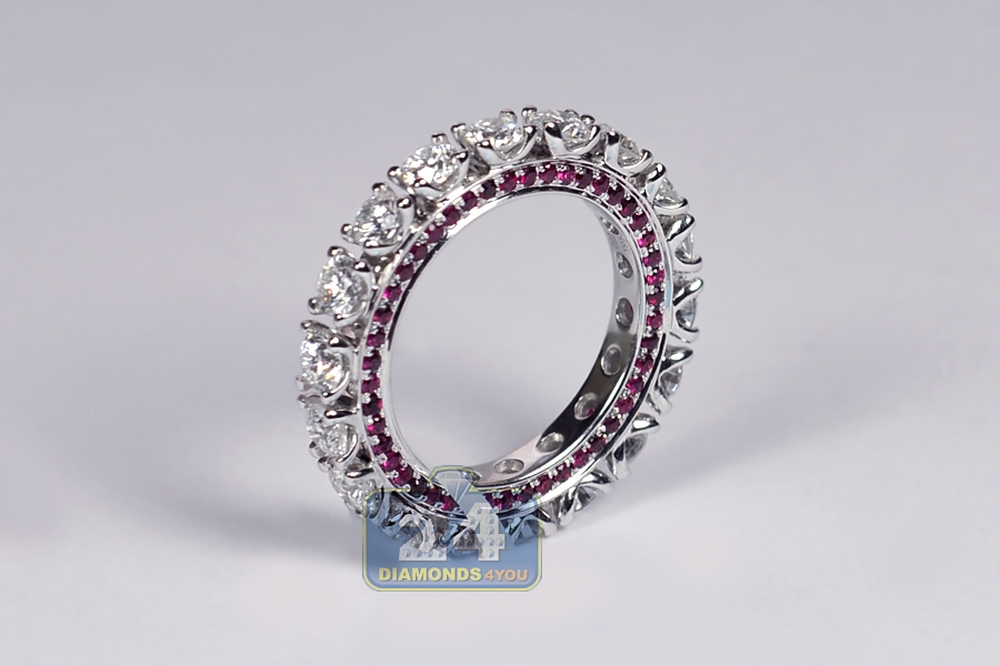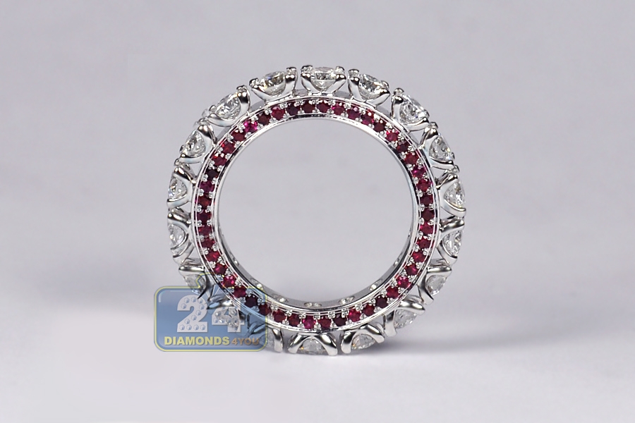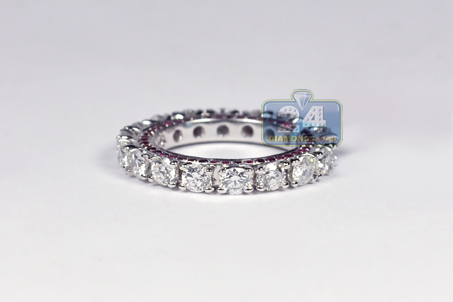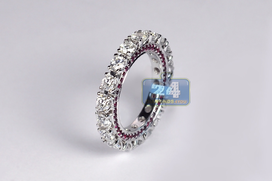 18K White Gold 4.30 ct Diamond Ruby Eternity Band Ring
