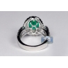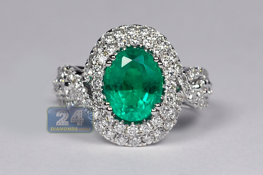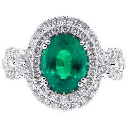Catch the wave of attention when you choose our breathtaking diamond gemstone ring! It's ably created from cool 18k white gold, and high-polished for shimmering smooth touch. It's amazed with a rich-looking synthetic (flux grown) oval-shaped emerald of 2.75 carats in the center. It's also highlighted with icy white round brilliant-cut genuine diamonds totaling 1.70 carat. The top measures 17 mm in width, and the shank is 4 mm. Add a hint of sophisticated style with this women's emerald halo ring!