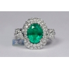 18K White Gold 4.45 ct Emerald Diamond Womens Halo Ring