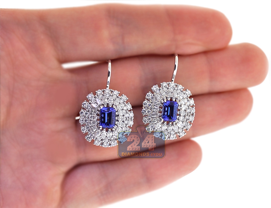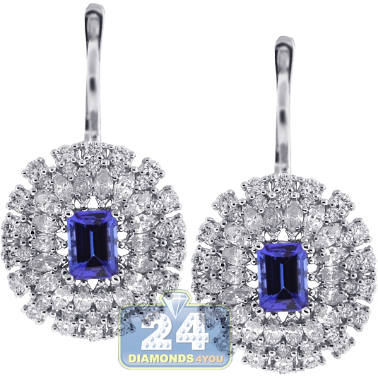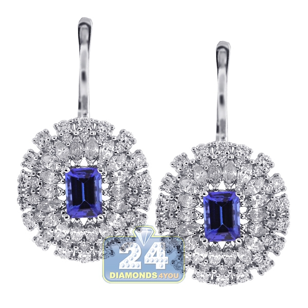 18K White Gold 4.49 ct Diamond Tanzanite Womens Cocktail Earrings