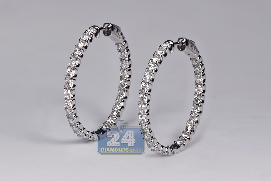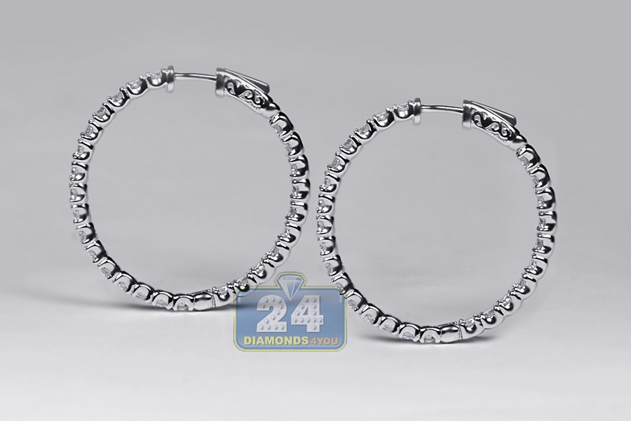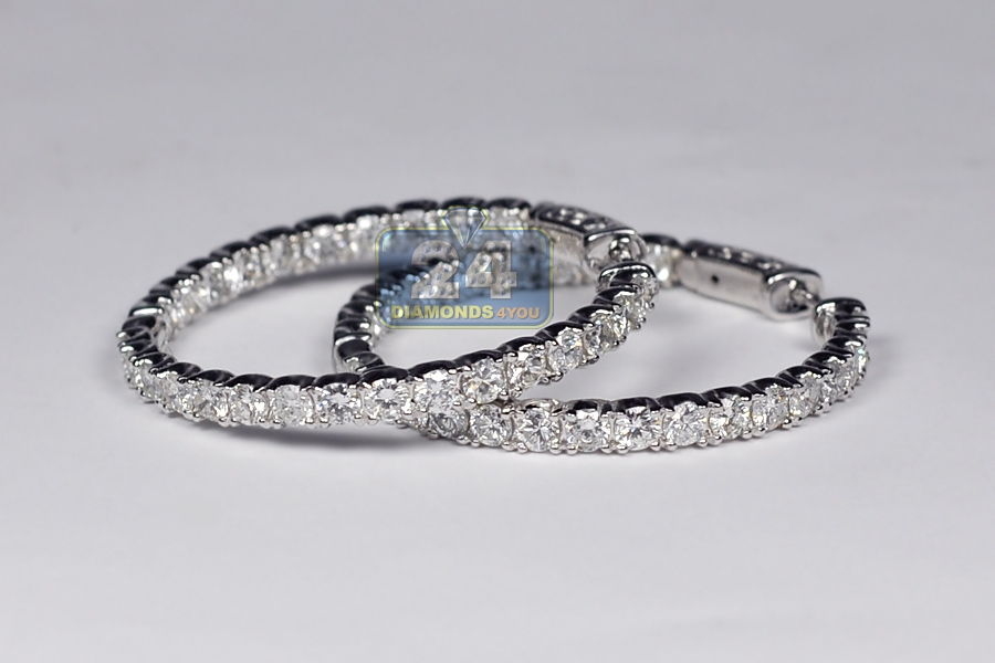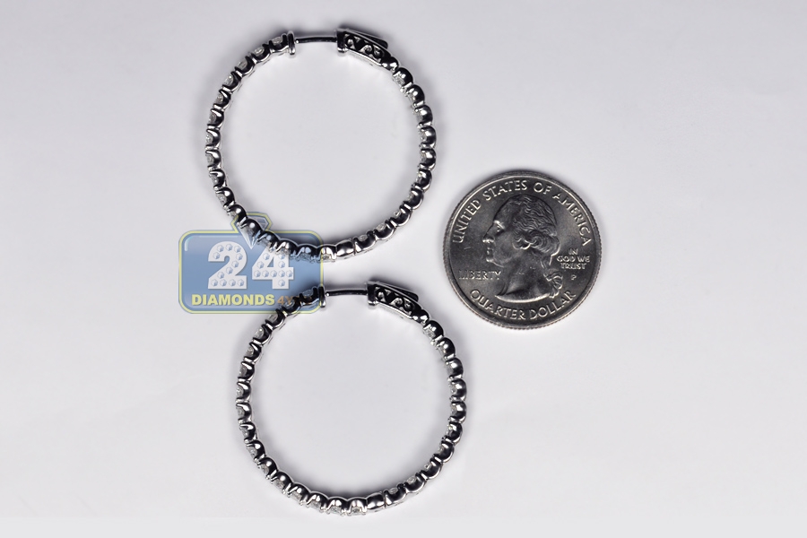 18K White Gold 4.81 ct Inside Out Diamond Womens Hoop Earrings
