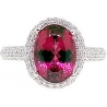 What an absolute heirloom! Our luxurious design expertly handcrafted in lustrous 18k white gold with shiny polish, features sparkling 1.06 carat total weight round cut diamonds elegantly surrounding such a beautiful oval shaped pink Tourmaline center stone! The gemstone is absolutely natural as wells as the genuine brilliants with VS1-VS2 clarity and F-G color. Declare your love and commitment in style!