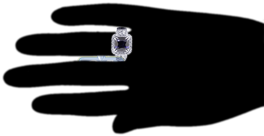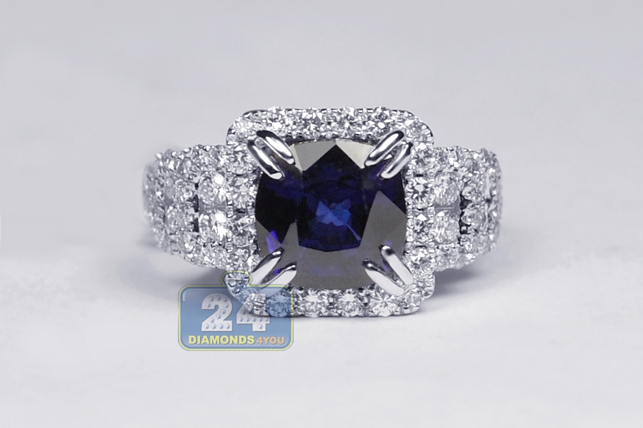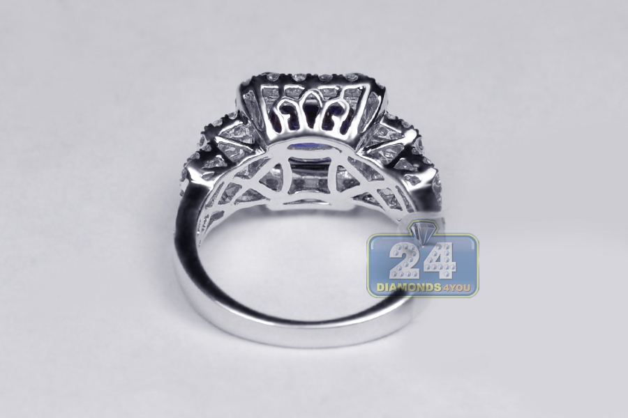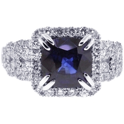 18K White Gold 4.96 ct Cushion Sapphire Diamond Womens Ring