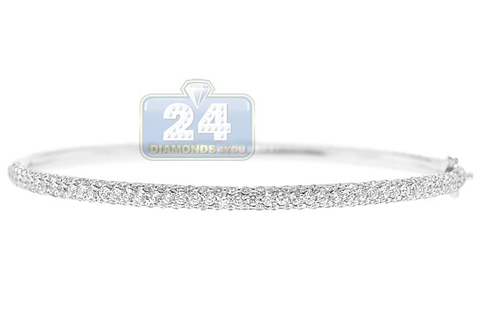 18K White Gold 4.19 ct Diamond Womens Oval Bangle Bracelet