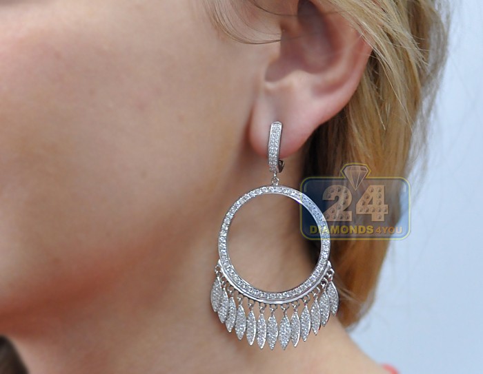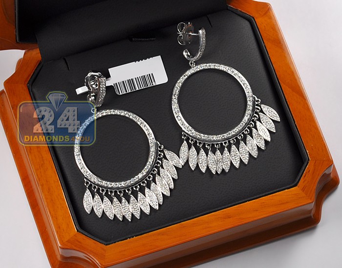 18K White Gold 4.28 ct Diamond Open Circle Drop Earrings