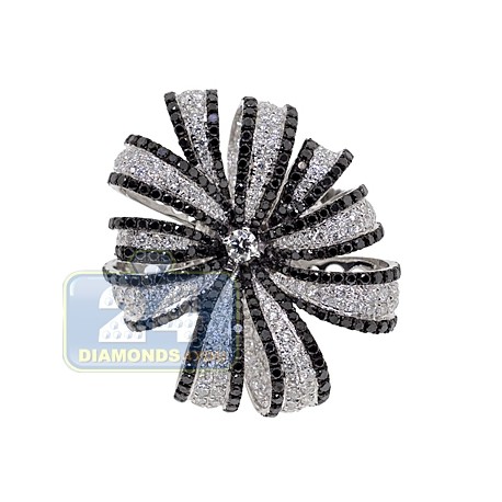 Make a gorgeous statement with this impressive cocktail ring! Its large and elegant design features a stunning flower handmade of cool 18k white gold with highly polished finish, and a combination of natural icy white and mysterious black diamonds totaling 4.58 carat. Each brilliant has top quality color and clarity. Take her breath away with this spectacular jewelry piece!