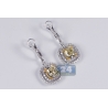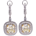 Fabulously shimmering, our pair of lady's dangle earrings shows off your taste of luxury! It is masterly created from lustrous 18k white gold, and has highly polished finish. Genuine fancy light yellow diamonds of radiant shape are set into the cups made of 18k yellow gold, both totaling 4.02 carats. They are also surrounded with 1.10 carat of icy white round brilliant-cut diamonds. This piece of jewelry is secured with user-friendly omega clasp. You will never want to take these fancy diamond earrings off!