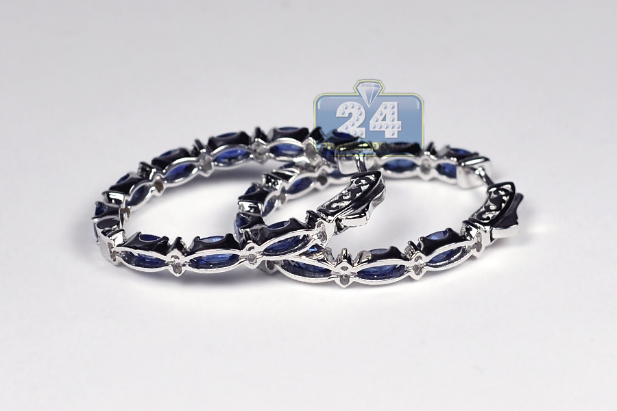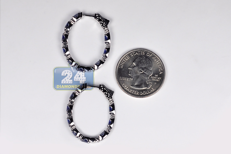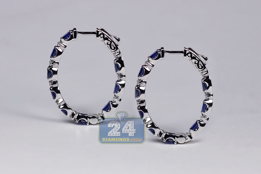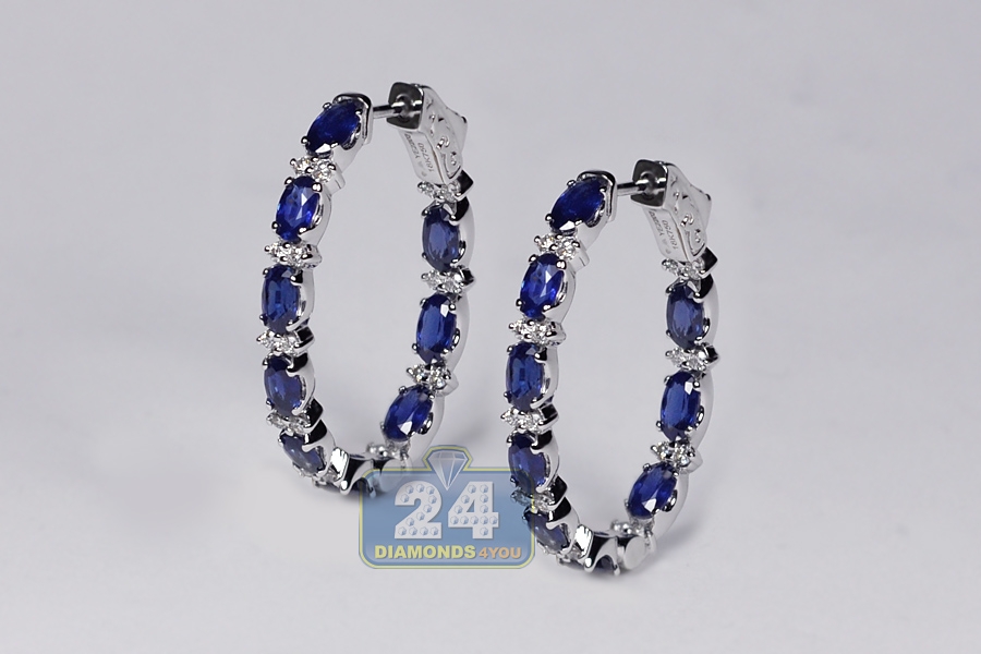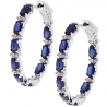 18K White Gold 5.21 ct Sapphire Diamond Oval Hoop Earrings