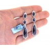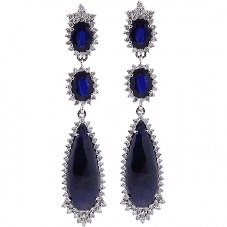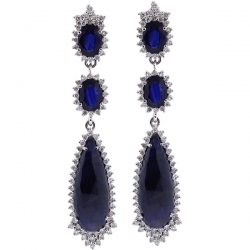 Our magic pair of gemstone and diamond earrings is truly captivating! It is expertly created from cool 18k white gold; encrusted with genuine pear- and oval-cut blue sapphires that are surrounded by icy white round brilliant-cut diamonds. These women's drop earrings have hanging length of 55 mm and width of 11 mm. Amazing addition to your collection of earrings!