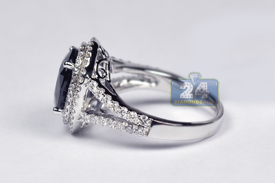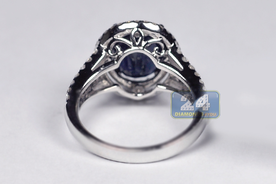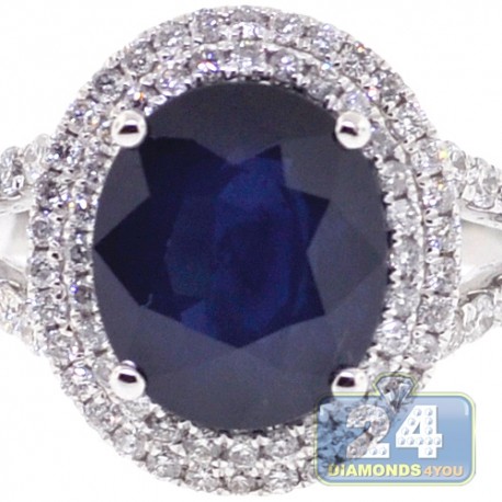 18K White Gold 5.63 ct Blue Sapphire Diamond Womens Ring
