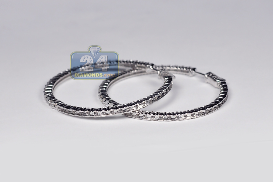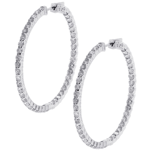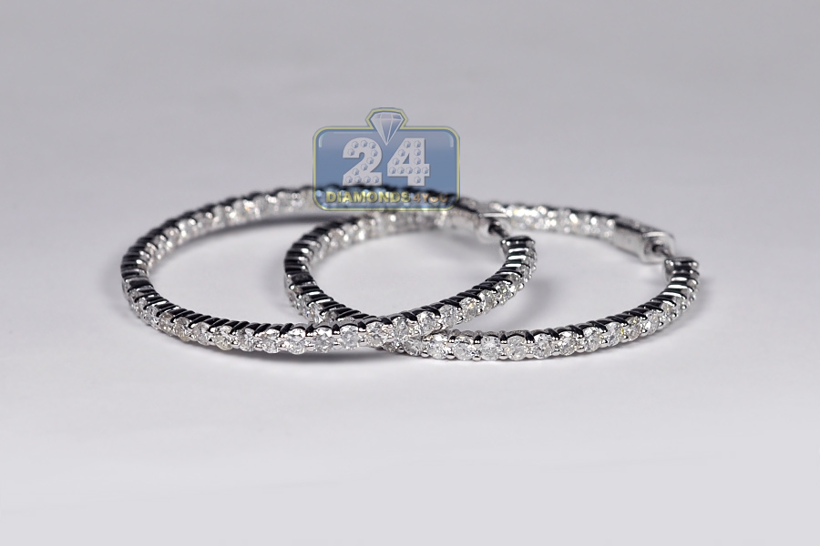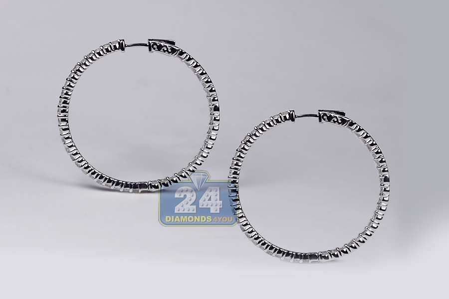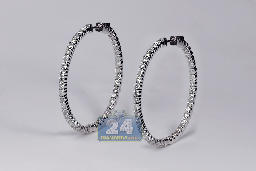 18K White Gold 5.75 ct Diamond Womens Round Hoop Earrings